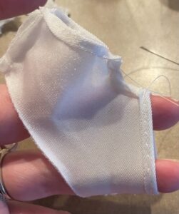 I decided to sew the halter top directly onto the doll because it’s very small and it would be too difficult to pull over the arms. I also chose to skip the collar opening since it’s also so small and gets covered up by the embellishment anyway.